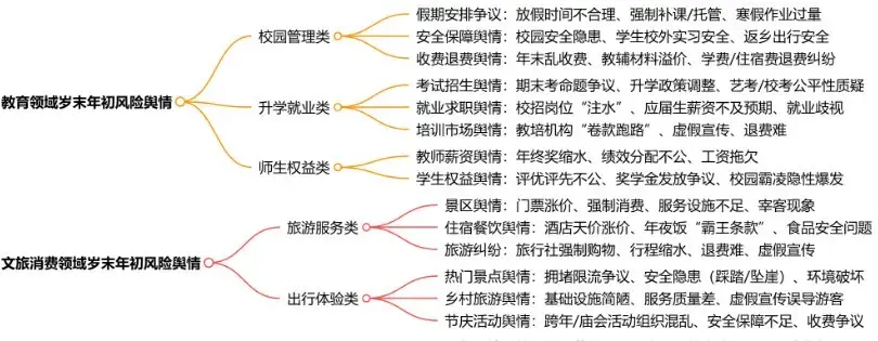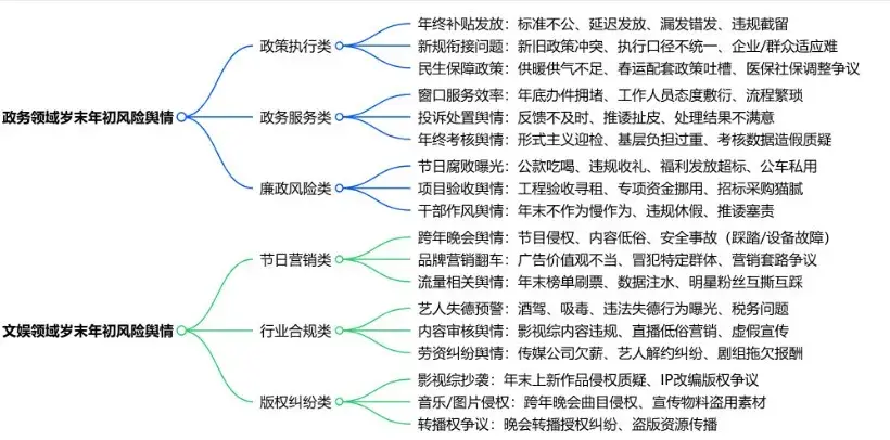 新春将至,人员流动迎来高峰,消费市场持续升温,文旅活动密集开展,同时企业进入年终冲刺与总结阶段,城市运行承压加剧。这一特殊时段,舆情触发点多、传播速度快、影响范围广,任何细小疏漏都可能引发舆论风波。为帮助各行业精准防控风险、妥善应对舆情,特此梳理关键风险点与应对指引。