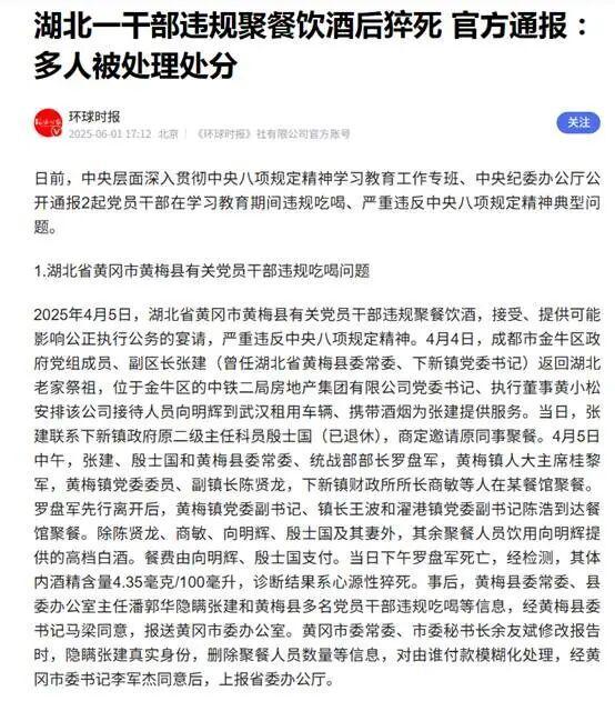 2025年4月,湖北黄梅发生一起违规吃喝致死事件。在处理该起事件过程中,当地干部为推卸责任,选择层层瞒报、私下约定保密,甚至删帖、封口,试图让所有知情者沉默。最终引发舆论风波,被新华社点名批评,定性为严肃的政治问题。