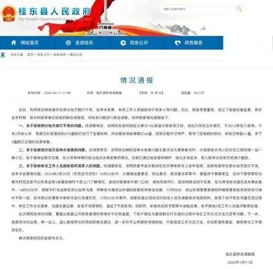 据2026年4月9日《大皖新闻》报道,湖南郴州桂东县大塘镇春风村村民黄先生春节回乡时,发现106国道及隧道50多盏路灯长期不亮、夜间出行危险,便在抖音发视频反映问题,内容属实、并无恶意。这本是一件只需核实维修、简单回应就能解决的普通民生诉求。